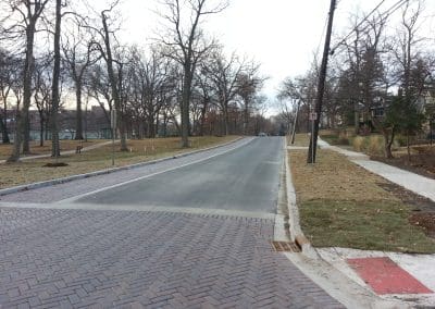 The Village of Glen Ellyn improved Lenox Road along the historic Lake Ellyn Park, balancing aesthetic preservation with functional upgrades. The project included permeable unit paver parking lanes and roadway pods to enhance stormwater management while maintaining the park’s historic character and providing additional parking capacity.