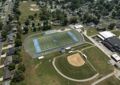 The project replaced the old grass field with a new synthetic turf field, upgraded the cinder track to a paved surface, and added a handicap-accessible pedestrian entrance. The turf has significantly benefited athletics, band, and PE programs by providing a surface ready for use shortly after rain. It has also allowed Mater Dei to host games for other schools when their fields were unplayable, helping teams avoid cancellations and rescheduling.